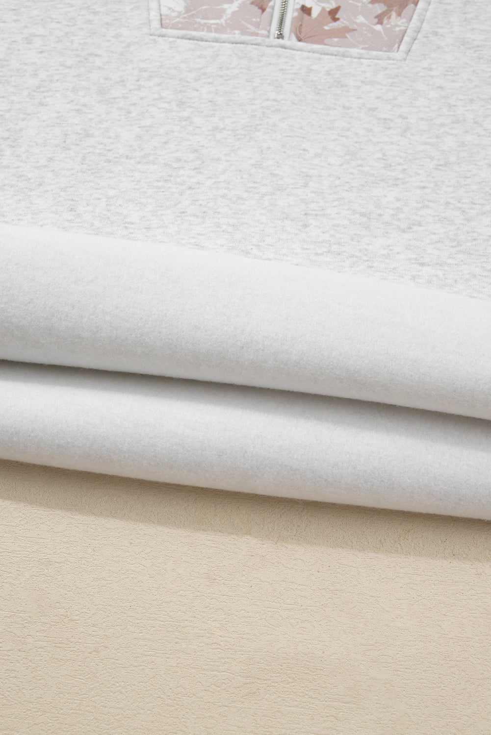 Gray Camo Leaves Patchwork Zipped Collar Pullover Plus Size Sweatshirt