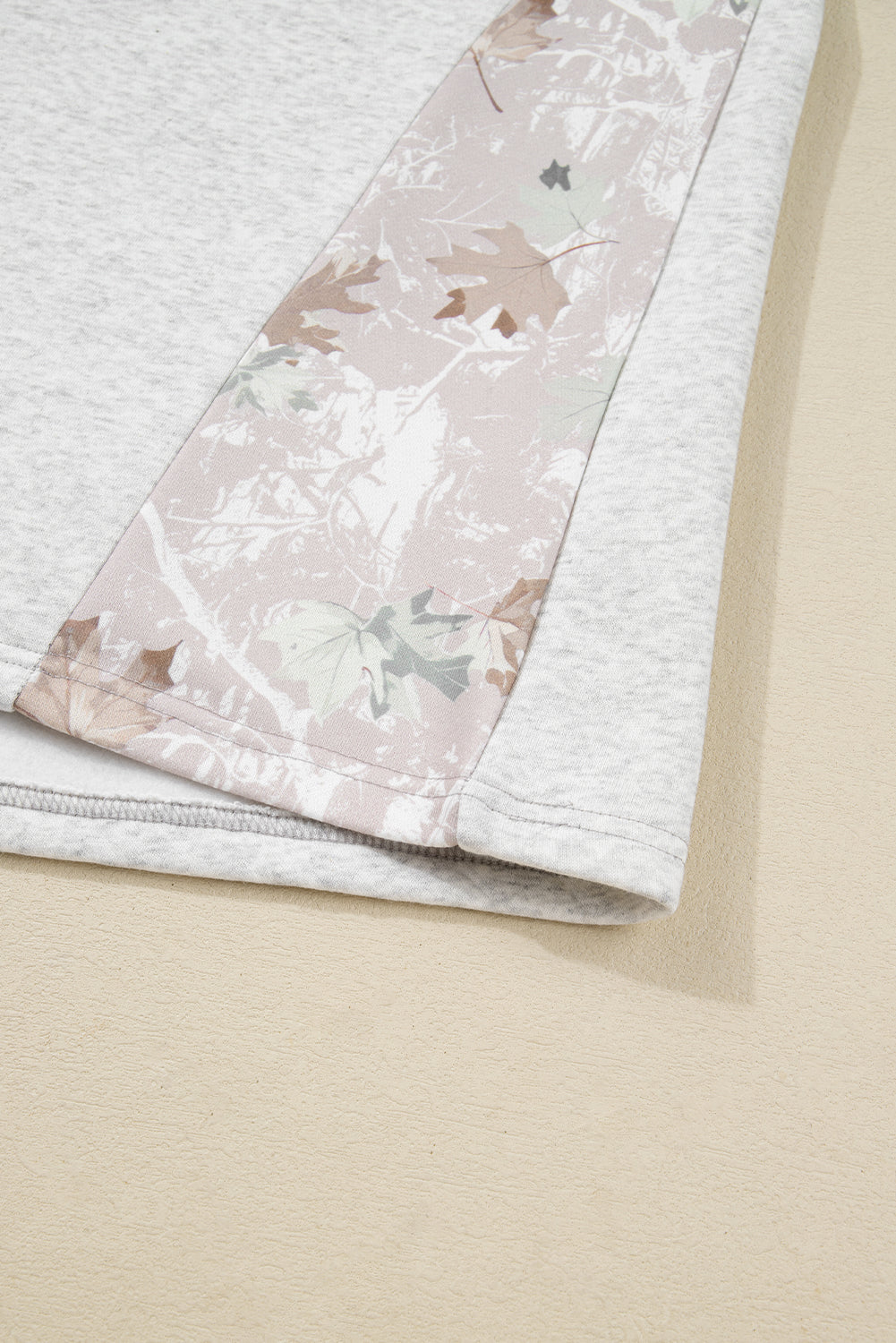 - The camo leaves patchwork gives this plus sweatshirt a unique detail.