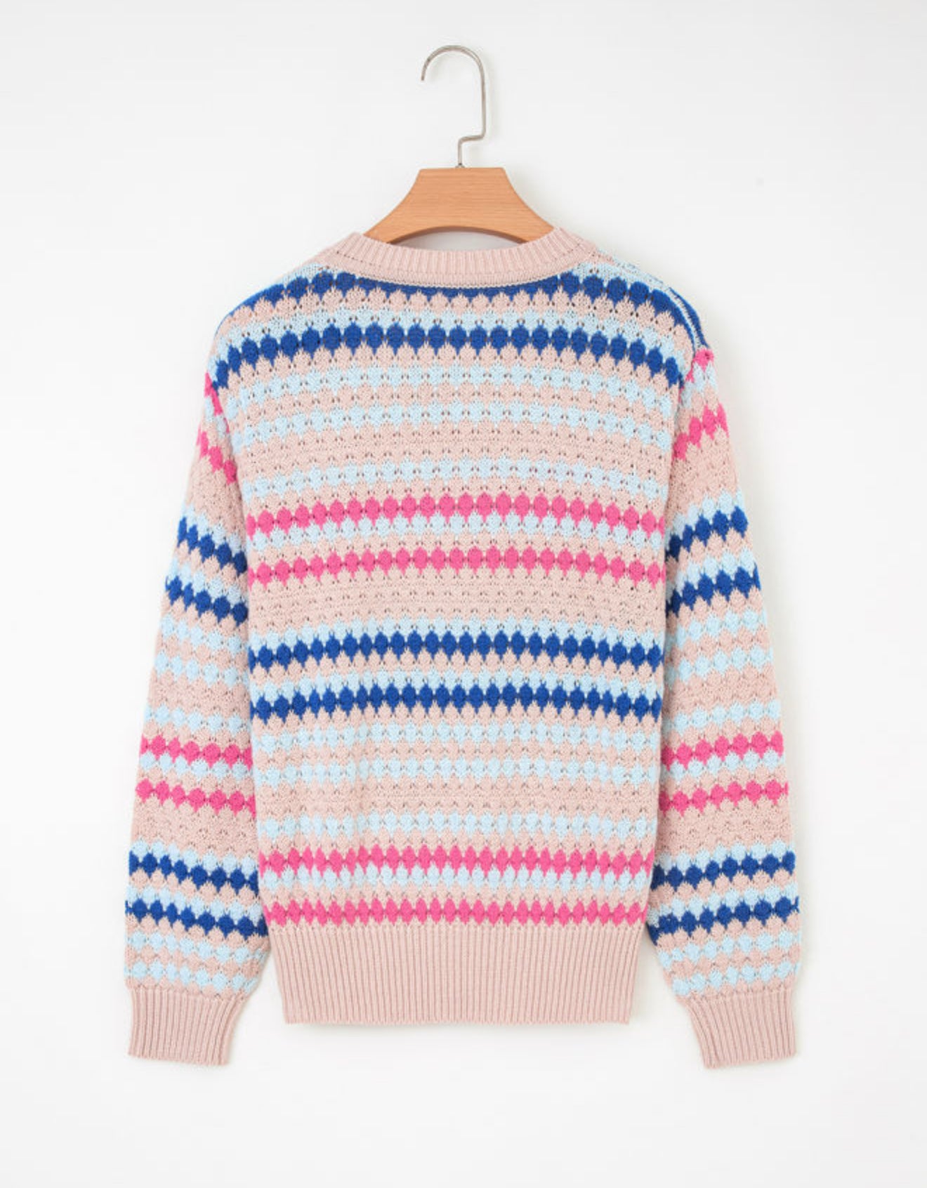 Add a touch of quirkiness to your wardrobe with our Khaki Drop Shoulder Sweater. This versatile piece features a playful combination of khaki color, drop shoulder design, and striped eyelet details. Perfect for any occasion, this sweater is sure to elevate your style game.